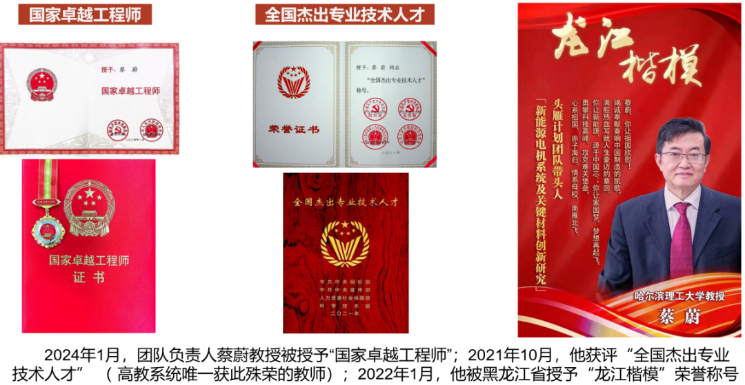 蔡蔚,硕士研究生、博士研究生、博士后研究生导师,哈尔滨理工大学终身荣誉教授、俄罗斯工程院外籍院士、国际自动机工程师学会等四个学会会士。他是全球汽车电机系统的知名专家和我国新能源汽车电驱动行业公认的领军人物。现任国家重点研发项目新能源汽车总体组成员和电驱动专家组长、国家特聘创新企业家专委会副主任、黑龙江省战略科学家计划头雁团队负责人、中国电动车百人会等三个学会理事和近20个专委会主任和委员;他是国家、黑龙江省、山东省、北京市和中关村等高层次人才特聘专家。作为项目负责人主持国家“863”计划、重点研发、自然基金重点项目5项、省部级项目11项、企业合作项目20余项,发表学术论文110篇,授权发明专利57项(含国际发明专利38项),主持/参与制定国家和行业标准10余项。曾带领团队创下我国新能源汽车驱动电机、SiC控制器和“三合一”电驱动总成出口欧美数个第一。获省部级科技奖励10余项(含特等和一等奖5项)、首届国家卓越工程师(全国81人,2024年)、第六届全国杰出专业技术人才(全国92人,2021年)、全国科学素质工作先进个人(全国205人,2021年)、中国科协60年百名科学家百名基层科技工作者(全国89人,2018年)、中国汽车创新人物(2015年)和龙江楷模(全省2人,2022年)、龙江工运百年先模人物(2025年)、黑龙江省事业单位工作人员记大功(2024年)等20余项荣誉称号。