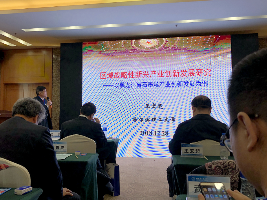 王宏起教授与团队成员讨论“黑龙江省石墨烯产业三年行动计划”。