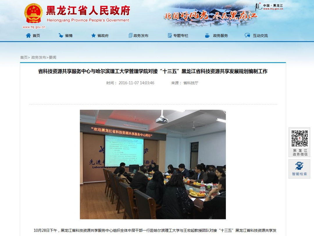 团队的“十三五”黑龙江省科技资源共享发展规划被黑龙江省政府采用。