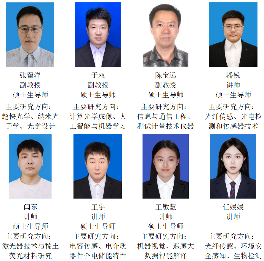 团队现有成员7人,包括教授1人、副教授3人、讲师3人。其中,博士后2人,博士生导师3人,硕士生导师6人;指导仪器科学与技术、信息与通信工程、安全科学与工程、集成电路科学与工程、物理学、光学工程等学科研究生,目前在读硕/博士52人。团队平均年龄32岁,梯队结构合理。团队成员长期从事生化传感探头设计与功能化、信息感知与智能处理、功能材料靶向识别与定量分析,以光纤/二维材料-机器学习深度融合的智能生化信息感知与处理为研究特色。团队注重基础研究与应用研究的结合,取得了一系列创新性研究成果,设计了生化传感探头与系统、生化信息感知与智能系统。