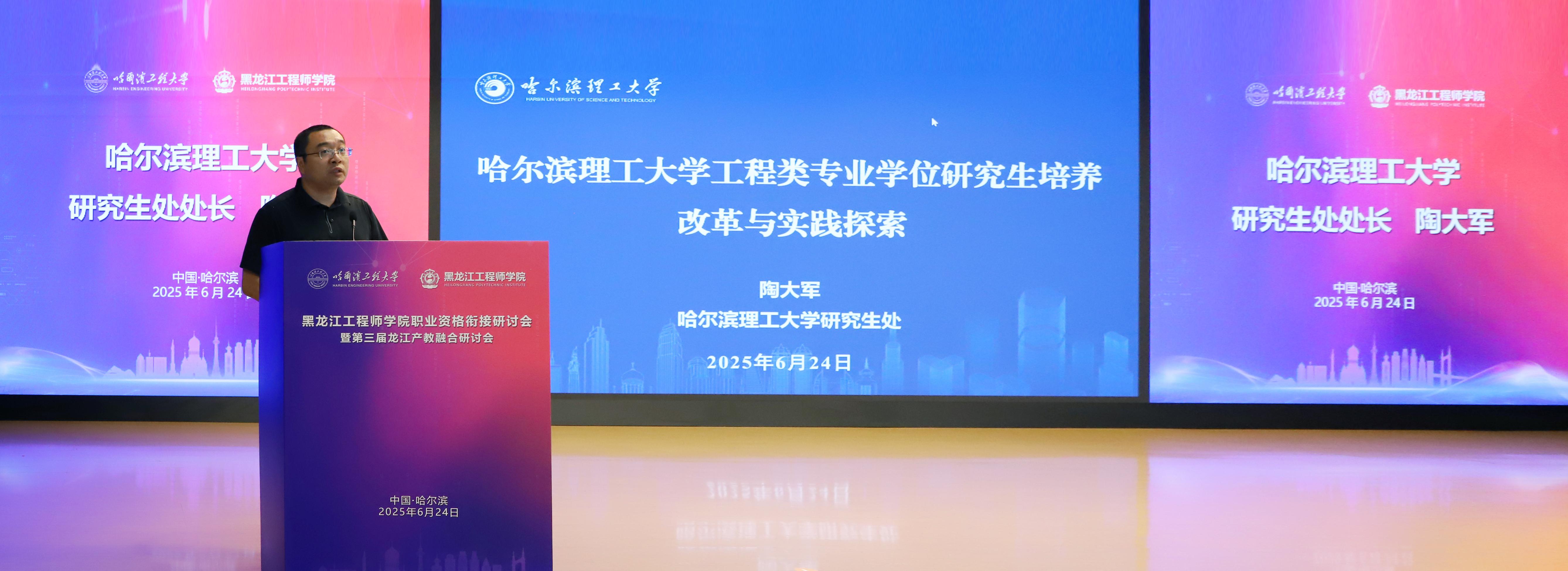 2025年6月24日,由黑龙江工程师学院主办、哈尔滨工程大学承办的“黑龙江工程师学院职业资格衔接研讨会暨第三届龙江产教融合研讨会”在哈尔滨召开。黑龙江省人力资源和社会保障厅副厅长高广宏,黑龙江省教育厅学位管理与研究生教育处处长霍慧出席会议,百余位黑龙江省属部属高校和高端智能装备产教融合育人联盟企业成员单位有关负责人参会。我校工程师学院院长陶大军、副院长翁凌、副院长孙明晓出席会议。