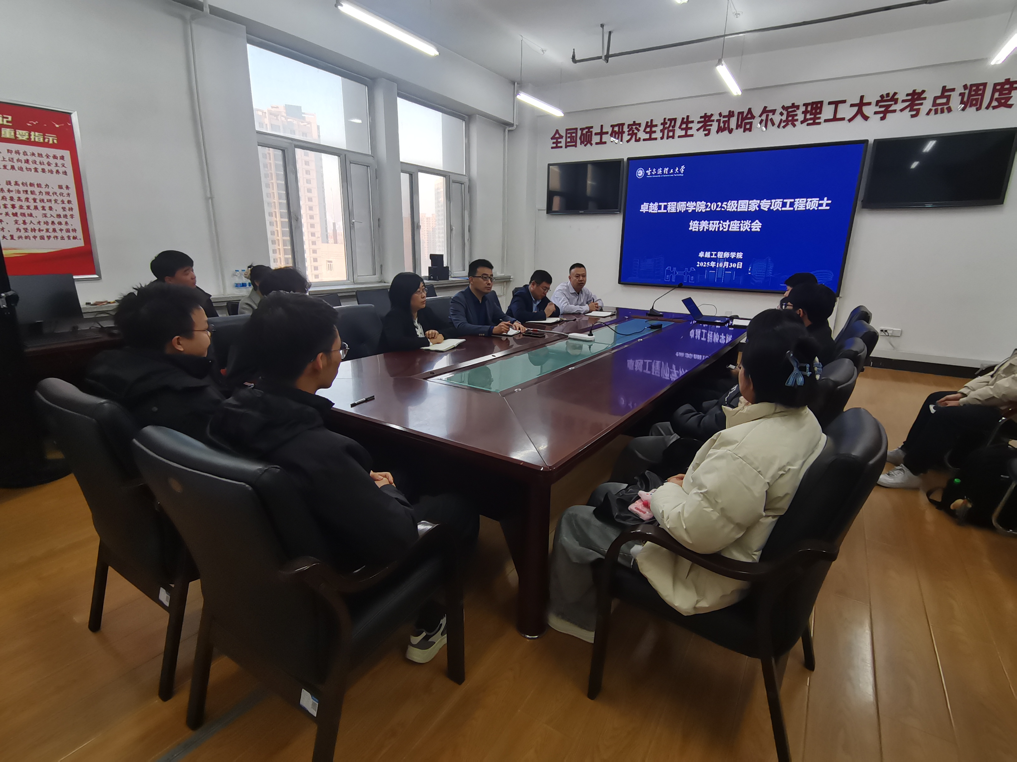 2025年10月30日,2025级国家专项工程硕士研究生培养研讨座谈会(卓工培养第1期)在教学主楼E1303会议室举行。卓工院2025级国家专项工程硕士研究生代表、研究生处副处长孙晓明、刘万涛、李会军应邀参加,会议由卓工院副院长孙明晓主持。